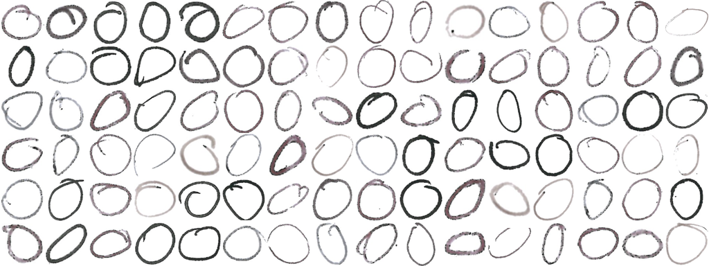 CircleID features two related classification tasks on static images of hand-drawn circles. The goal is to learn visual representations that separate writer-specific traits from pen-specific traits (ink deposition, stroke texture, width).